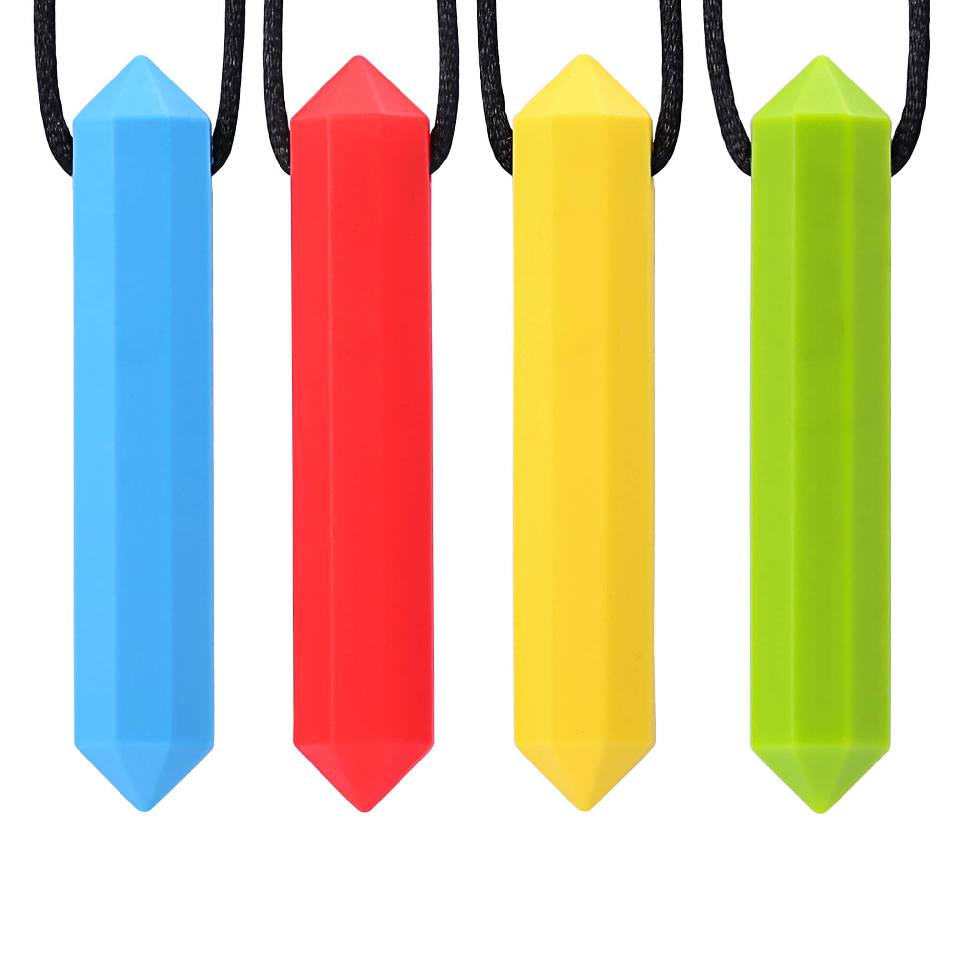 Solace Chewelry® is made from durable, tear-resistant food-grade silicone that is safe for your child's chewing and biting needs. The chew necklace is non-toxic and tested to be free of any BPA, phthalates, or lead. Each necklace cord also includes a breakaway safety clasp to prevent accidents.