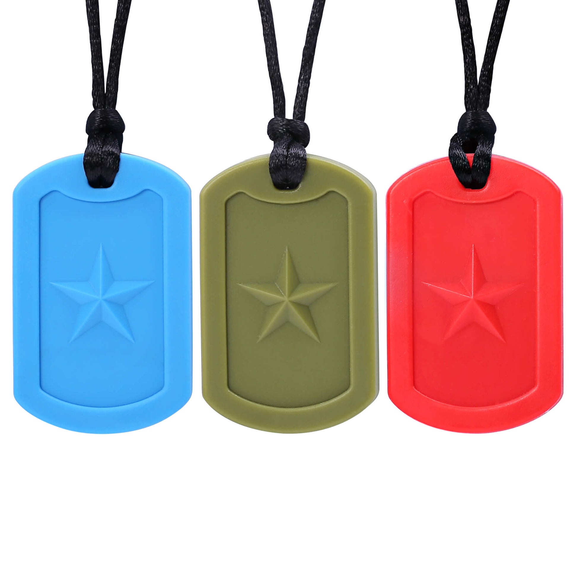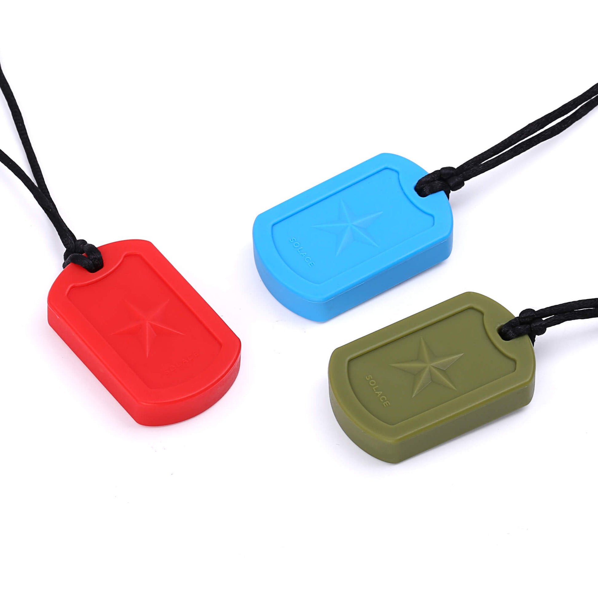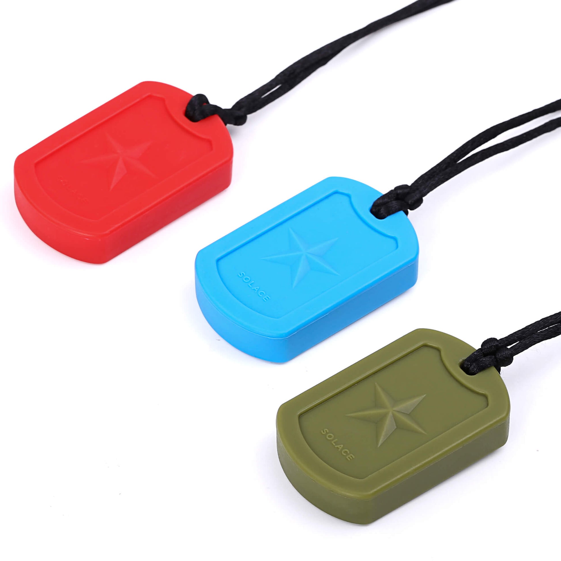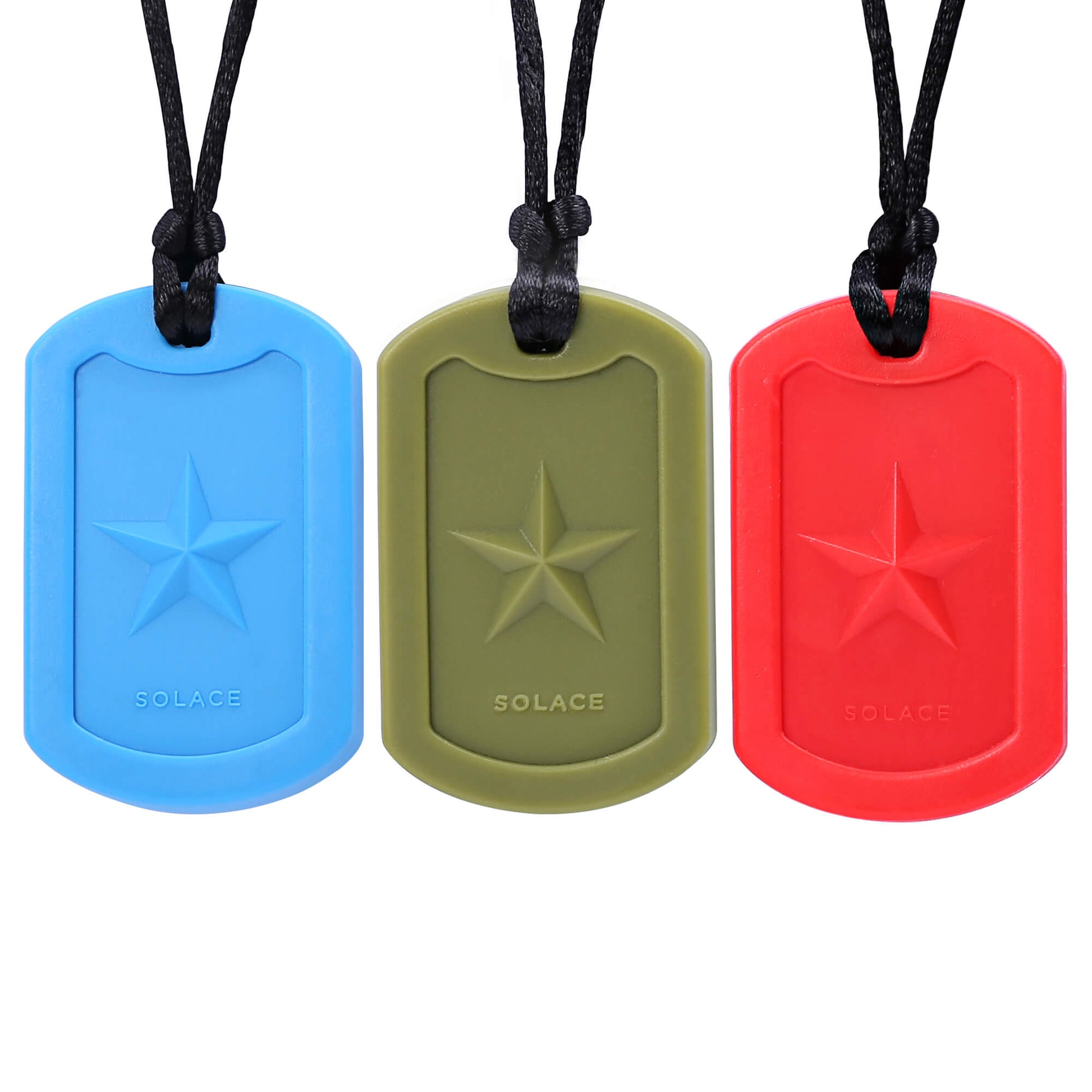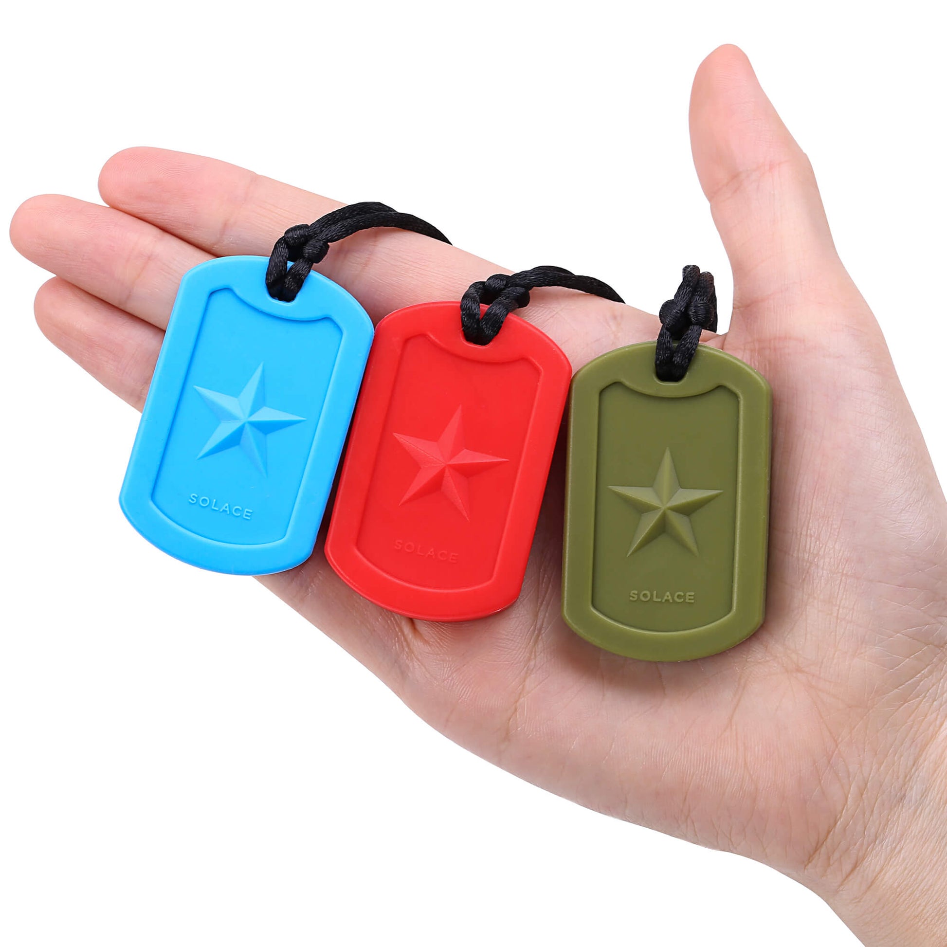 The Solace Dog Tag Chewelry® necklace is the perfect sensory chew toy for anyone needing oral stimulation.